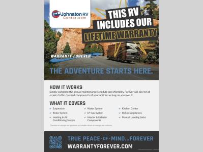 Johnston RV Center is not responsible for any misprints, typos, or errors found in our website pages. Any price listed excludes sales tax, title, and doc fees only. We do not charge a prep/walkthrough fee or any other hidden fees. Manufacturer pictures, specifications, and features may be used in place of actual units on our lot and may not be representative of the particular unit being viewed. Please confirm specific unit details and availability with your dealer representative. All calculated payments are an estimate only and do not constitute a commitment that financing or a specific interest rate or term is available.